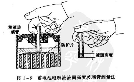 1)玻璃管測(cè)量法:玻璃管測(cè)量法,用一空心玻璃插入到蓄電池電解液內(nèi)極板的上平面處,用大拇指按緊玻璃管上端使管口密封,提起玻璃管,測(cè)量玻璃管內(nèi)的液面高度即為蓄電池電解液液面高出極板的高度。標(biāo)準(zhǔn)值為10-15mm,正常降低時(shí)應(yīng)補(bǔ)蒸餾水,使之達(dá)到標(biāo)準(zhǔn)值。